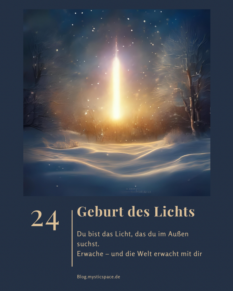 Adventskalender 2025 20. Adventsweisheit 2025 Wenn du dich innerlich berührst, berührt das Bewusstsein deine Seele.Aufmerksamkeit ist Licht. Wo sie verweilt, öffnen sich innere Welten.Innere Berührung... 20. Dezember 2025