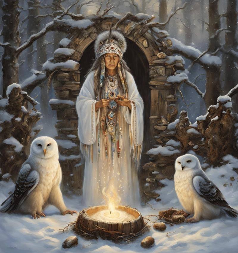 In der Tradition der weisen Frauen nehmen wir die schamanische Reise auf uns, um die Weisheit und Erleuchtung der Eule zu suchen. Wir begeben uns zu Yggdrasil, der Weltenesche, dem heiligen Baum des Lebens und der Schöpfung in der germanischen Mythologie. Unsere Reise führt uns durch die Ebenen des Seins, von den Wurzeln der Unterwelt über die mittlere Welt der Menschen bis hinauf zur Krone des Baumes, wo das Nest der Eule liegt – ein Ort der Klarheit und Erleuchtung, der den Göttern und Göttinnen nahe ist.