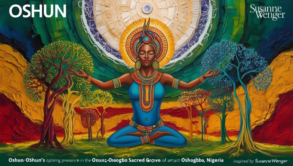 In den 1950er-Jahren kam Susanne Wenger mit ihrem Ehemann Ulli Beier nach Nigeria. Während viele Europäer dieser Zeit mit kolonialem Blick auf afrikanische Kulturen herabschauten, öffnete Wenger ihr Herz für die spirituellen Traditionen der Yoruba. Sie ließ sich initiieren und wurde eine Priesterin der Göttin Oshun – der Göttin der Flüsse, der Fruchtbarkeit, des Reichtums und der Schönheit.