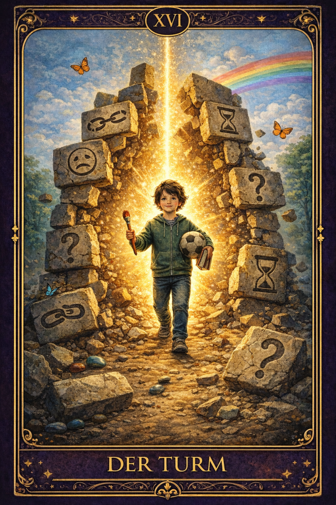 In meinem Herzen als Erzieherin brennt das Feuer einer großen Liebe zur Offenen Arbeit in der sozialpädagogischen Praxis. Ich erinnere mich an einen Paradigmenwechsel, der mich vor einigen Jahren in das Bewusstsein der Offenen Pädagogik geführt hat. Dafür steht für mich symbolisch die Tarotkarte „Der Turm“.